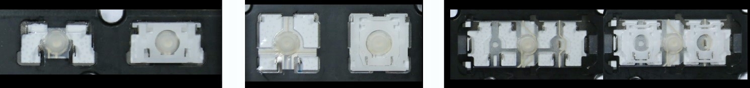*In some keyboard models, more hinge types may be used than the three shown in the pictures; some keys may also have metal stabilizers.