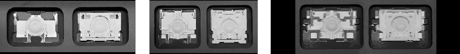 *In some keyboard models, more hinge types may be used than the three shown in the pictures; some keys may also have metal stabilizers.