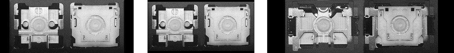 *In some keyboard models, more hinge types may be used than the three shown in the pictures; some keys may also have metal stabilizers.