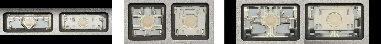*In some keyboard models, more hinge types may be used than the three shown in the pictures; some keys may also have metal stabilizers.