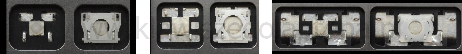 *In some keyboard models, more hinge types may be used than the three shown in the pictures; some keys may also have metal stabilizers.